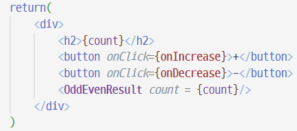 return 부분에 OddEventResult 컴포넌트를 부르고 props으로 state인 count를 넘겨준다.