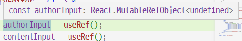 authorInput, contentInput 상수에는 React.MutableRefObject가 저장된다.