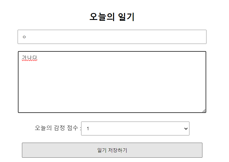내용부분에 3글자만 입력하고 일기 저장하기 버튼을 누르면 textarea 태그가 focus 된다.
