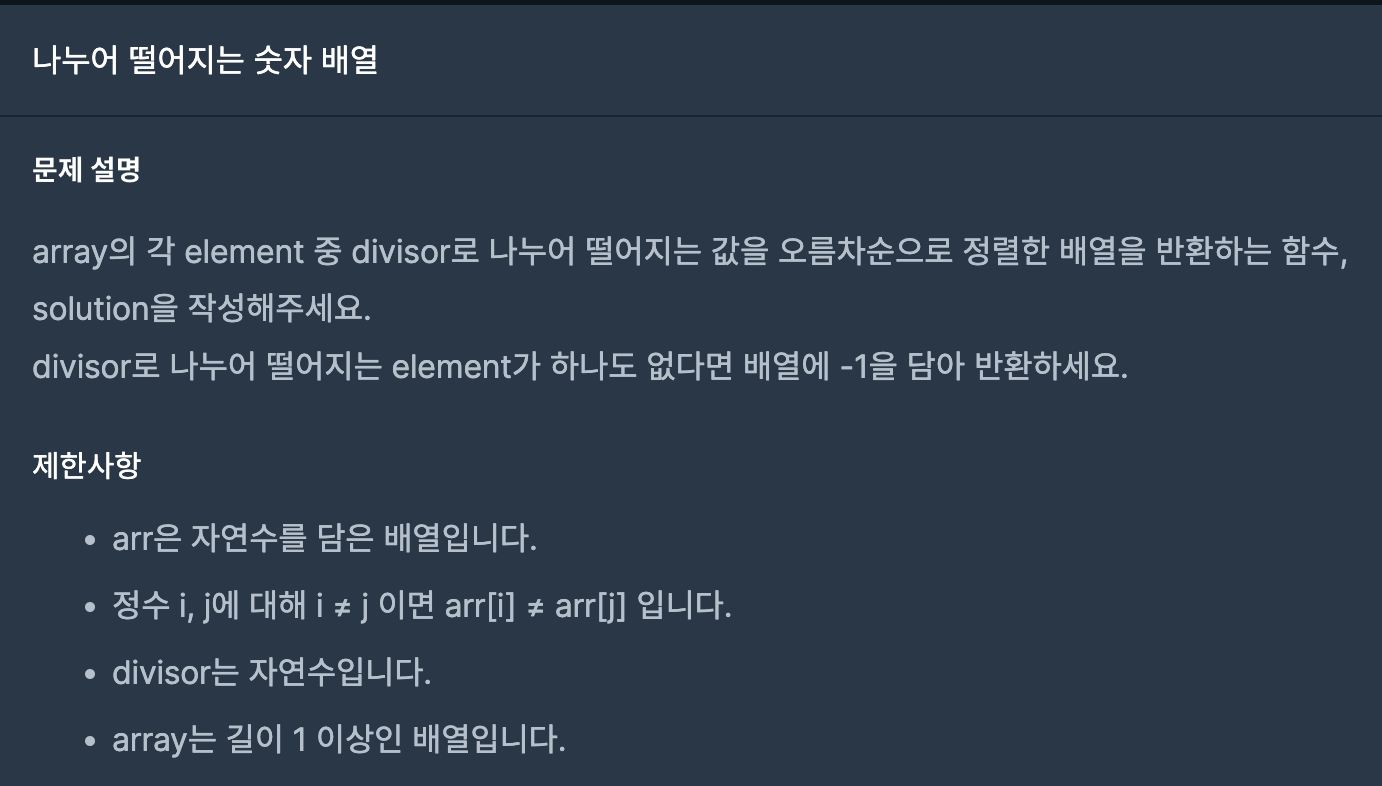 - filter로 arr 배열을 순회하면서 divisor로 나누어 떨어지는 값만 배열로 다시 생성한다.
