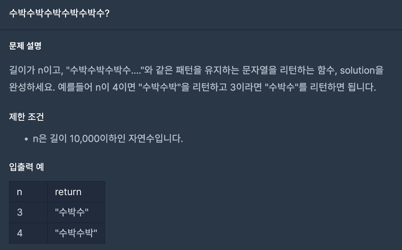 [프로그래머스] Lv.1 수박수박수박수박수박수? 본문