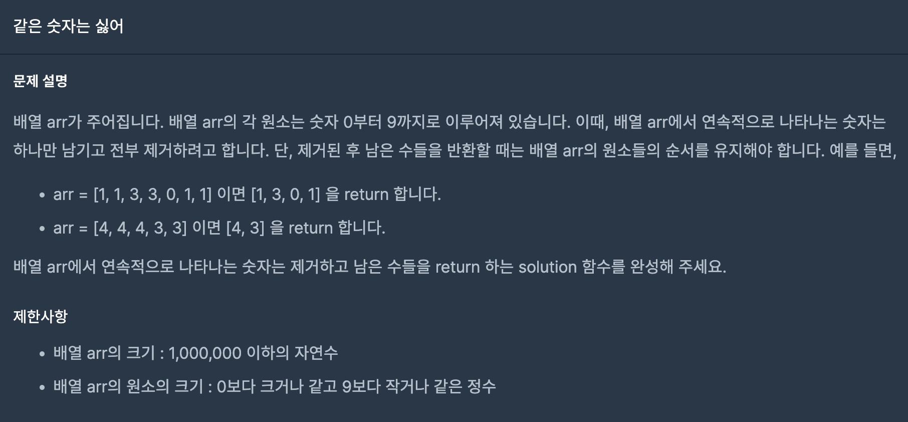 [프로그래머스] Lv.1 같은 숫자는 싫어 본문